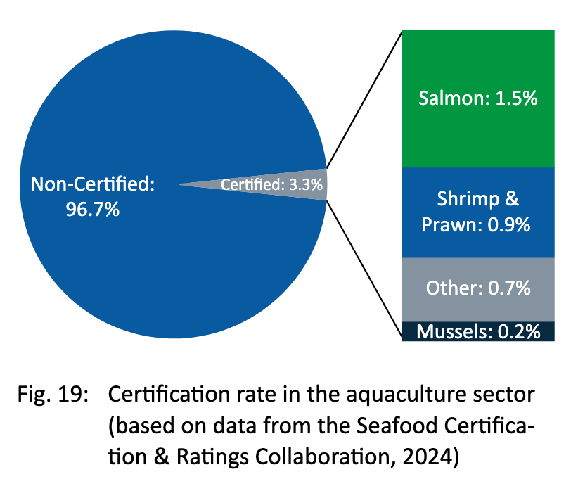 Improve the sustainability of farmed shrimp, perhaps through eco-labels and certifications, which, despite potential, are not widespread, expensive, and vary in credibility.