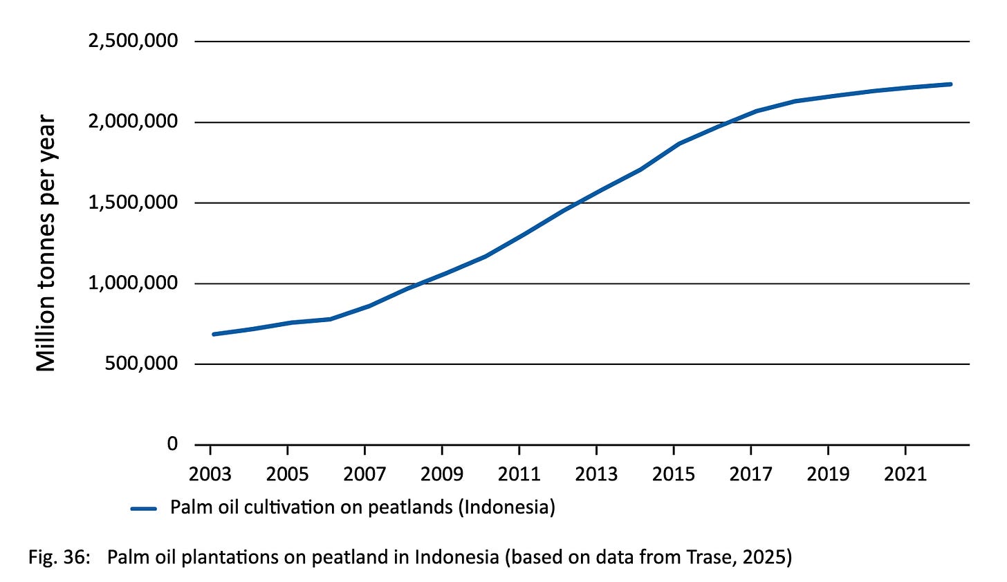 “Peatland emissions are particularly severe: despite accounting for only 14% of plantations, they contribute 92% of greenhouse gas emissions from Indonesia’s palm oil sector, the equivalent of one-fifth of the country’s total emissions.”