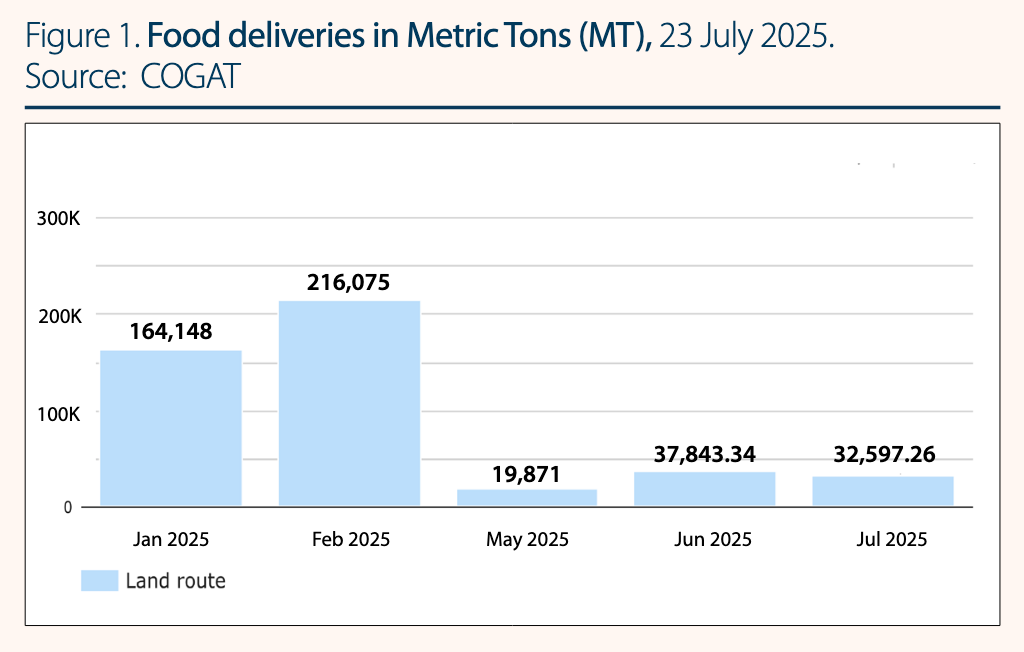 Just for context: The estimated minimum of staple food required per month to cover the basic food needs of the Gazan population is 62,000 metric tons (MT).