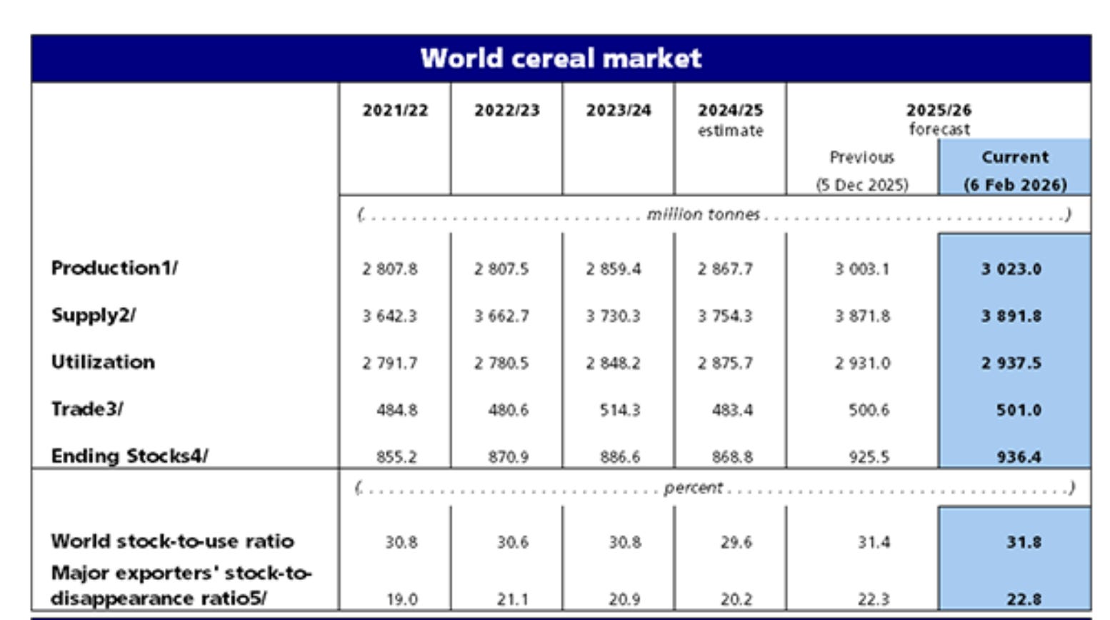 Stocks riding high: “The global cereal stocks-to-use ratio in 2025/26 is anticipated to rise to 31.8 percent, its highest level since 2001”.