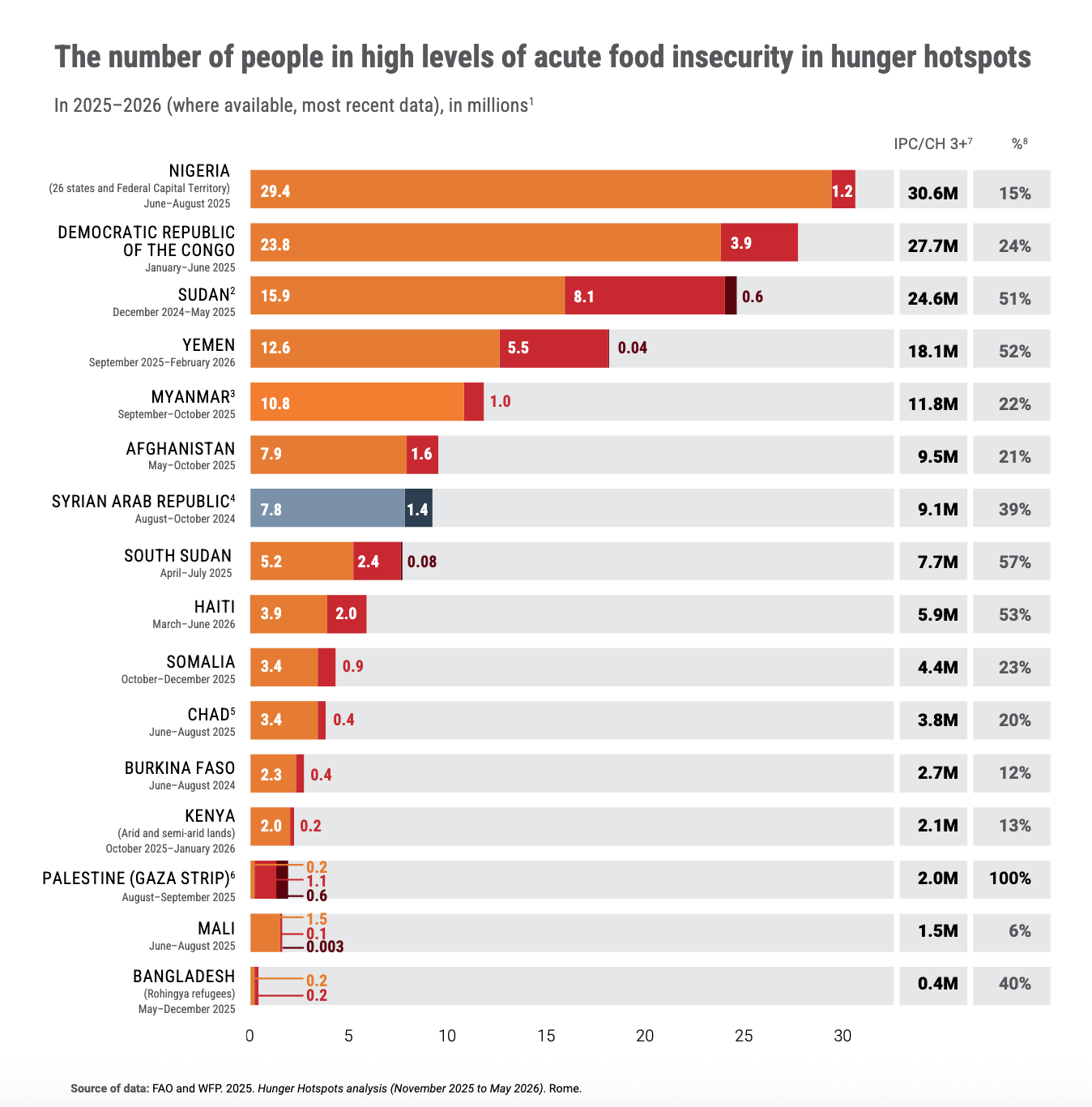 Acute hunger: Nearly 162 million people in 16 countries are estimated to face life-threatening levels of hunger between Nov 2025 and May 2026.