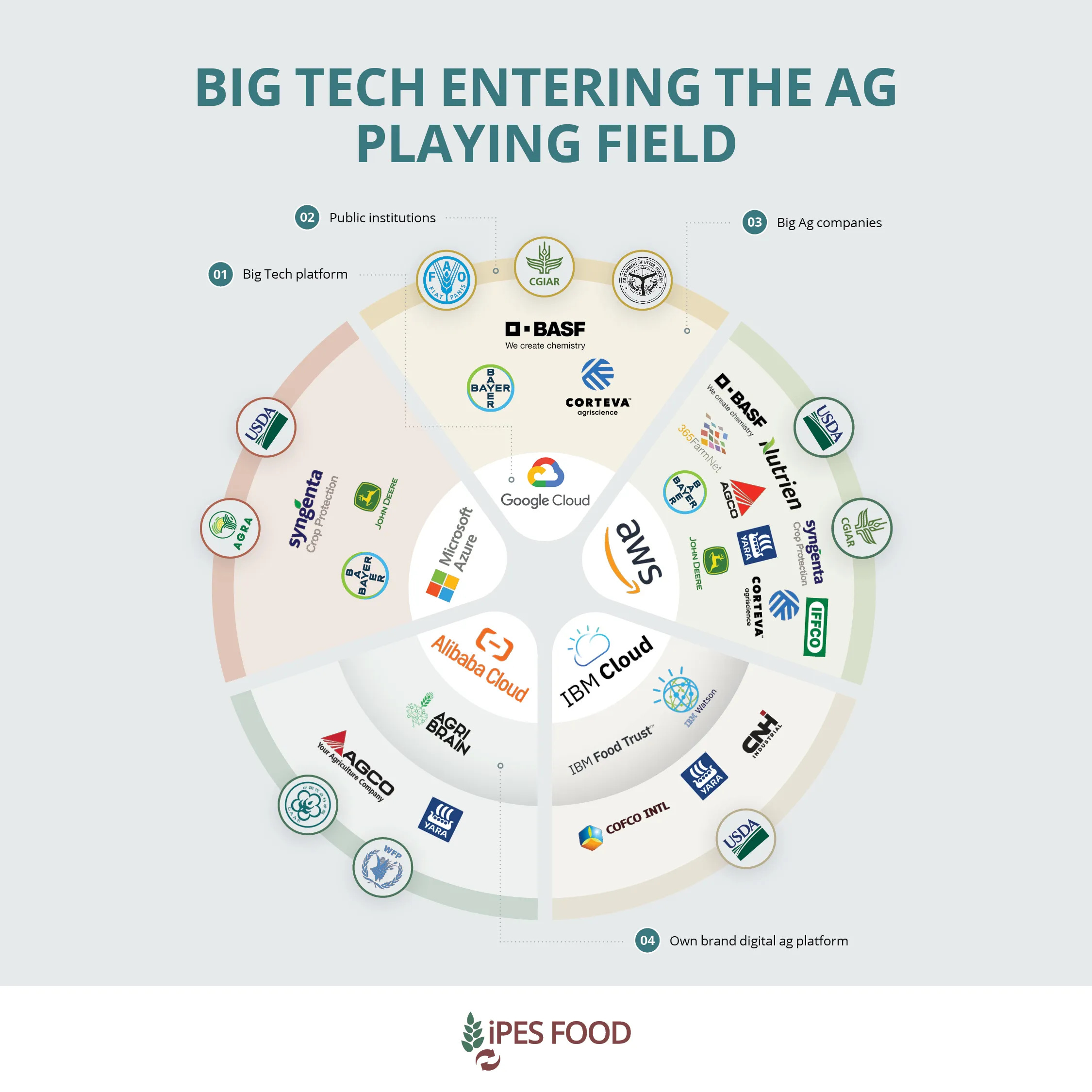 “A powerful new alliance between Big Tech corporations (including Google, Microsoft, Amazon, and Alibaba) and Big Ag firms is rapidly gaining control of farming under the guise of innovation,” it warned.
