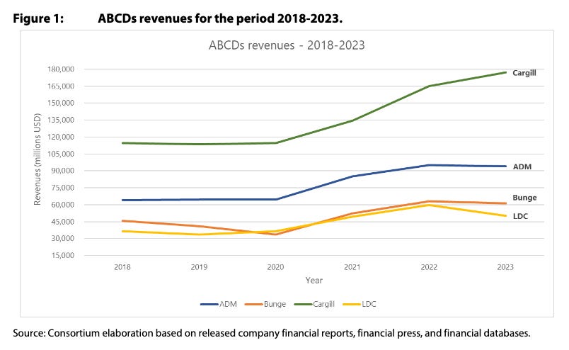 In the summers of 2021 and 2022, amid soaring food prices, the ABCDs reaped record or near-record sales. You can find their revenues in the above section and also in this Open Democracy article.